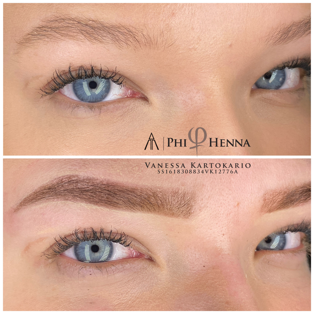 Phi Henna is een tijdelijke tatoeage op de wenkbrauwen. Ideaal voor degene die de vorm en tint van hun wenkbrauwen willen veranderen zonder een permanente oplossing.
