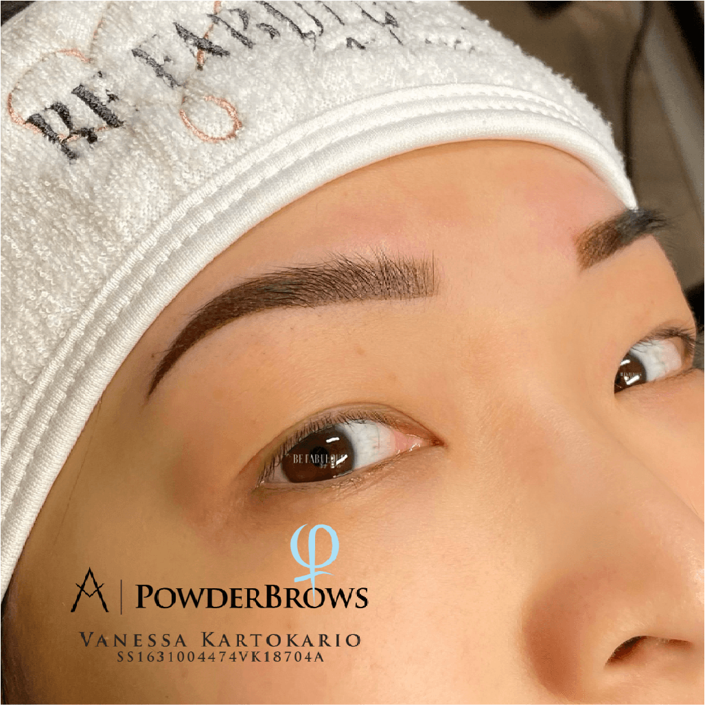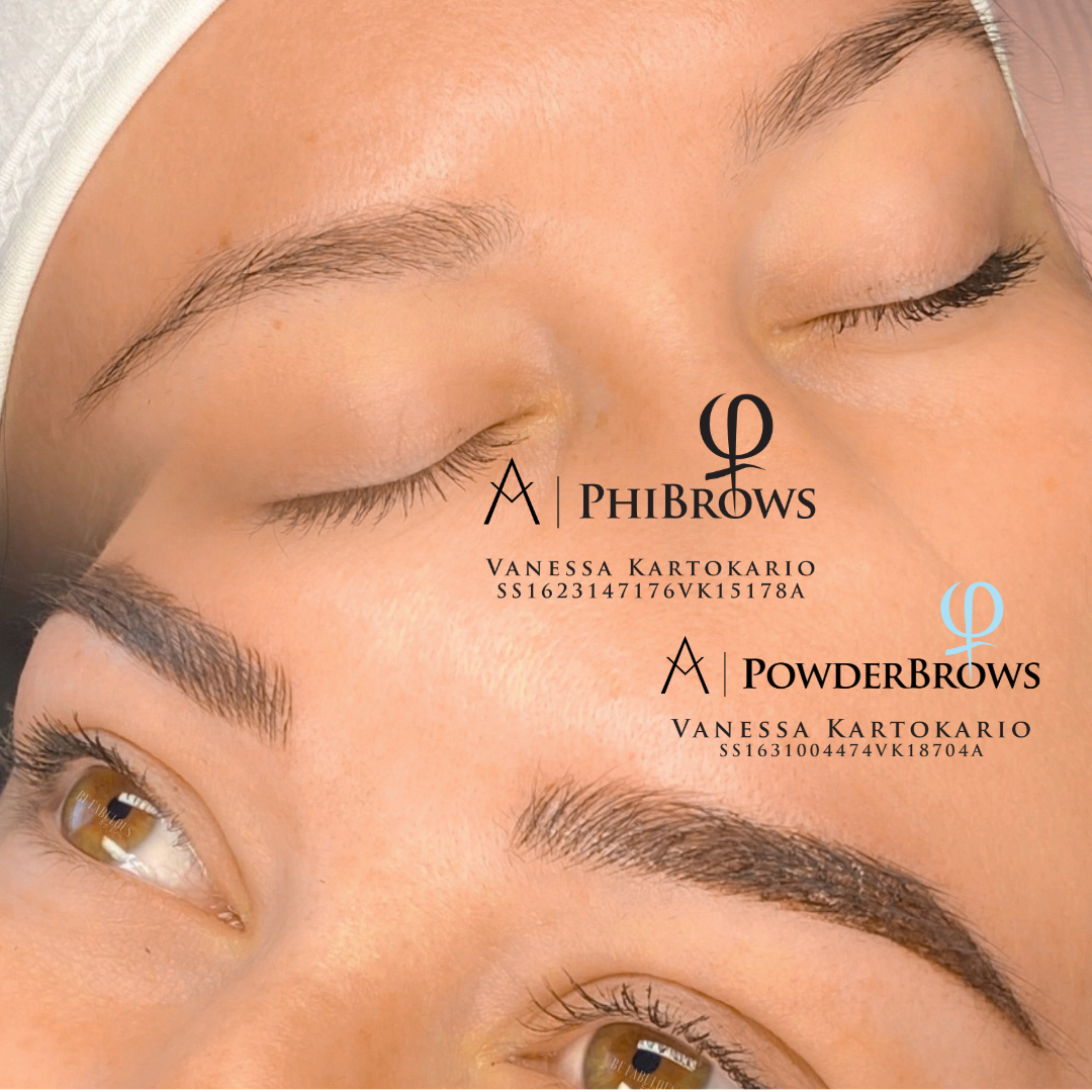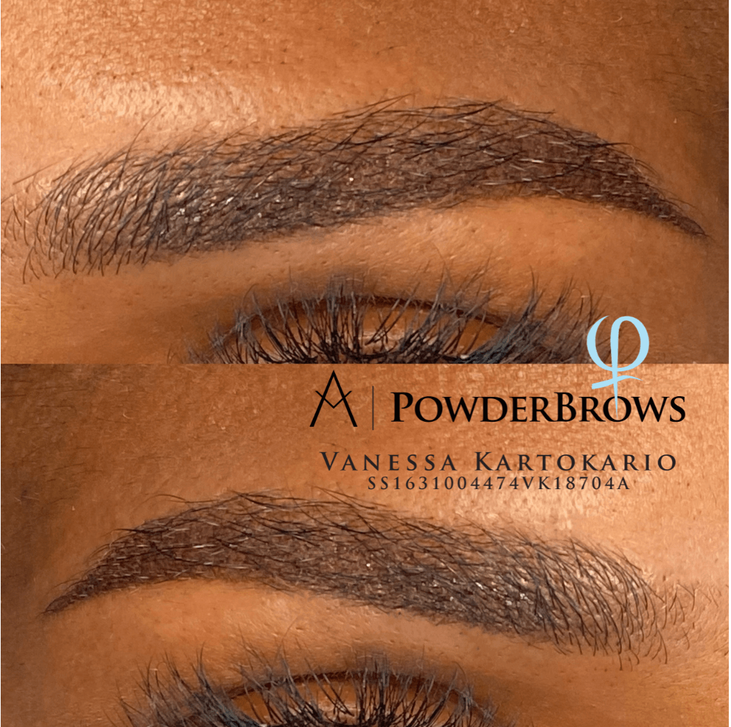Powderbrows is een semi-permanente wenkbrauw techniek, waarbij een zachte, poederige tint wordt aangebracht met behulp van een PMU machine. Onze brow artist begint meestal met lichtere pigmenten aan het begin van de wenkbrauwen en bouwt de dichtheid en intensiteit geleidelijk op naar de uiteinden van de wenkbrauwen. Hierdoor ontstaat een natuurlijk ogend verloop, vergelijkbaar met het aanbrengen van wenkbrauwpoeder